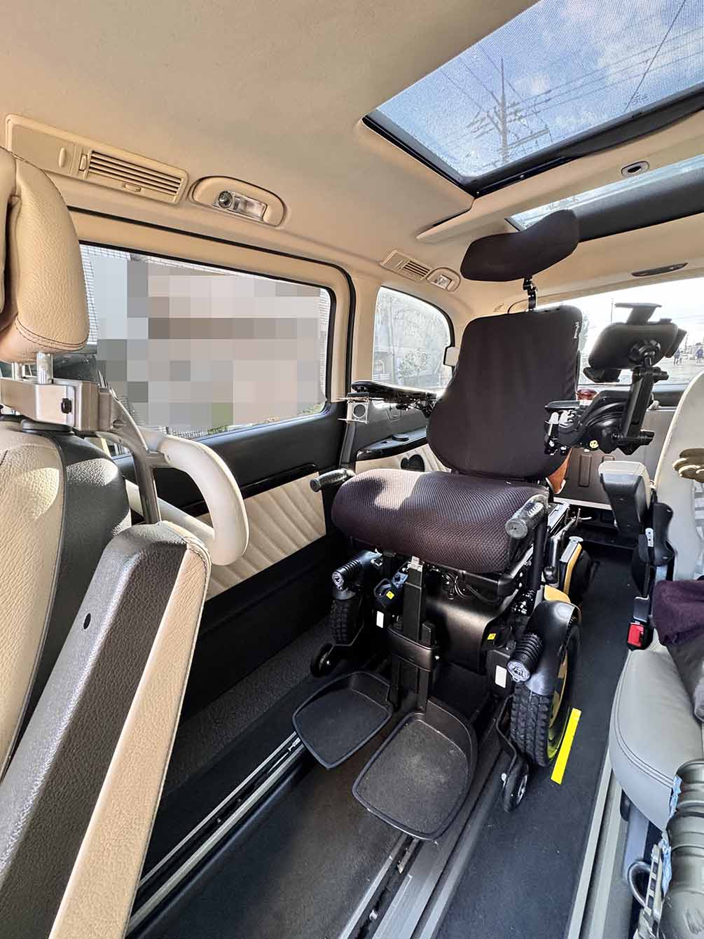 Vに関する記事はとにかく、「広さ」と「自由なシートレイアウト」を謳ったものが多いが、この通り結構タイトである。F3は寸法でいうとそこまで大きな車いすではないのだが、写真だとちょっとわかりづらいかもしれない。